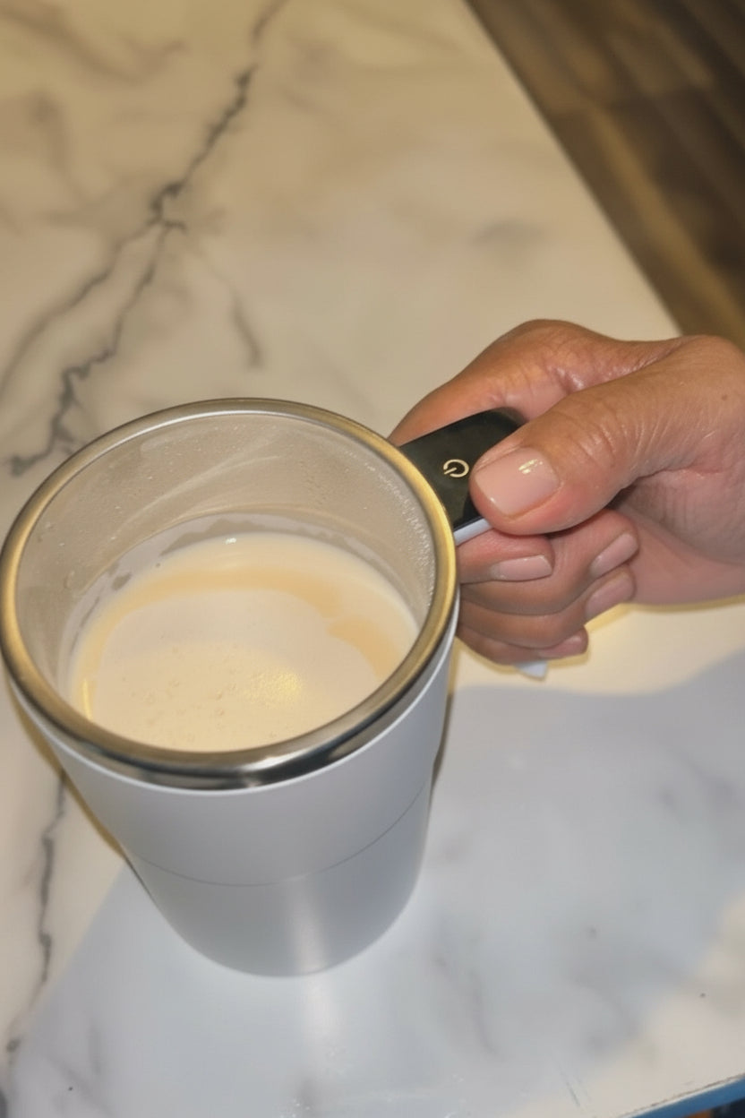 No need to grab a spoon or stir stick—just press a button and your drink stirs itself. It's perfect for busy mornings or multitasking at work.